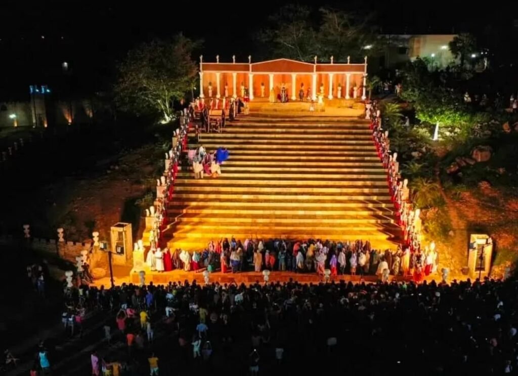 O palco da encenação segue sendo o Teatro Cidade Cenográfica, espaço construído em 2001, especialmente para reviver a atmosfera de Jerusalém à época. Com cenários monumentais naturais e construídos, além de toda estrutura de som e acessibilidade necessárias para proporcionar uma experiência marcante ao público, o Teatro recebe investimentos constantes para o aprimoramento de sua estrutura e é considerado o maior teatro do Piauí e o segundo maior a céu aberto do Brasil com 55.000 m² de área.